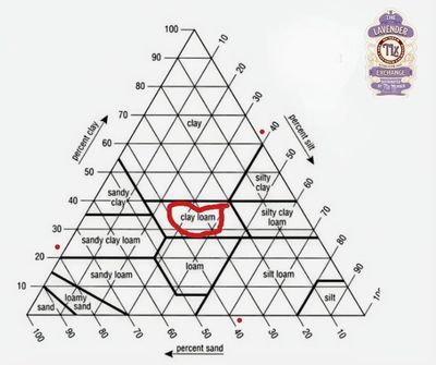 Using the pyramid image, if your soil is 38% Sand, 38% Silt, and 24% Clay....what have you got? I created this for one of my new lavender farmers after. receiving a copy of their Soil Texture Report. I didn't create the pyramid just charted their results (red dots) then you line them up and bingo ~ their soil texture
